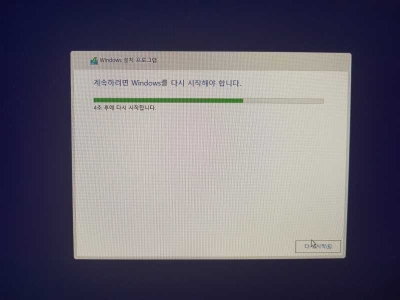 Q : 설치를 끝마치고 재부팅을 했는데 설치하는 창이 계속 반복돼요.