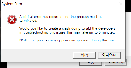 크립트 오류가 발생하여 프로세스를 종료해야 합니다."